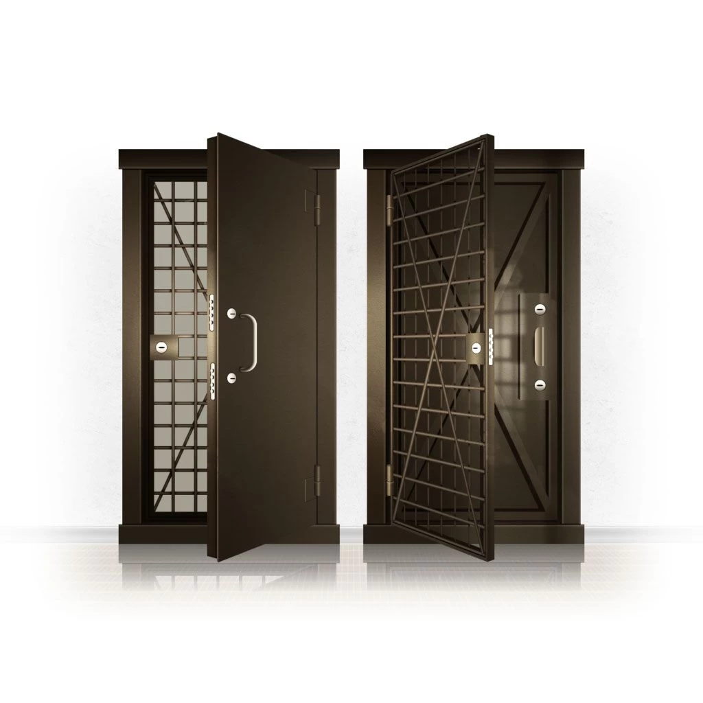 Металлические двери КХО и КХН представляют собой входные блоки, обладающие высоким уровнем взломостойкости и состоят из трех основных элементов: усиленного каркаса, сплошного металлического полотна и решетчатой двери. Дверной блок изготавливается из стального уголка 100*100 мм. Места крепления блока к стене цементируются и закрываются стальными наличниками шириной 40 мм. Крепеж заходит вглубь стены на 80 мм. В конструкции внешней створки монтируются ребра жесткости, для обшивки используется сталь толщиной не менее 3 мм. Внутренняя решетка изготавливается из прутка диаметром 16 мм. Размер ячеек решетки должен составлять не более 15 на 15 см. В точках пересечения прутья надежно приваривают друг к другу. В КХО и КХН необходимо поддерживать определенную температуру и влажность. Для этого внутреннее пространство глухой двери заполняется теплоизоляционным материалом, а по периметру двери приклеивается уплотнитель. Такие двери оборудуются замками с повышенным уровнем взломостойкости. Специализированные двери КХО и КХН в Козловке могут быть оснащены сигнализацией, в конструкции могут быть проушины для навесного замка и элементами для опечатывания. Если идет речь о двери в комнату хранения оружия, в створке оборудуется окно для выдачи оружия и спец. средств, которое накрывается стальной дверцей.